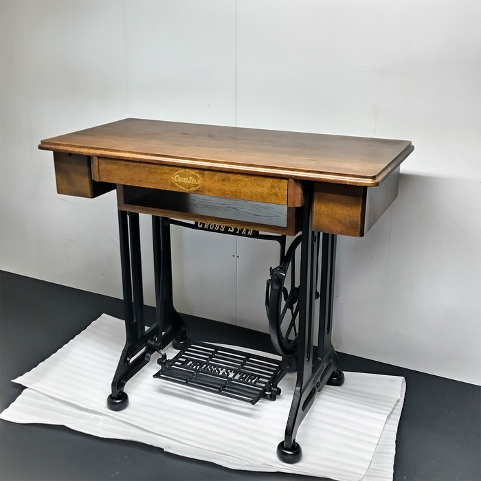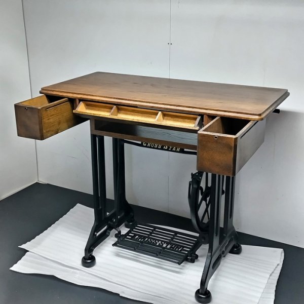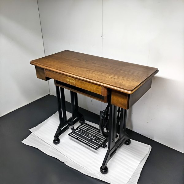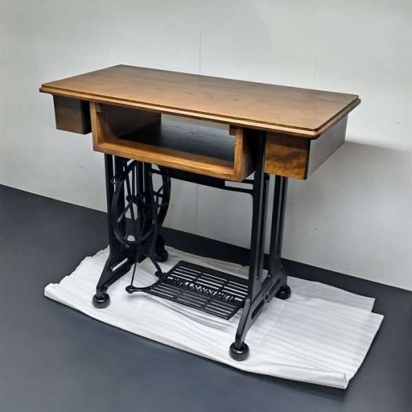 鉄部を黒に塗装直しと天板と棚はオーク材にを使用して新調いたしました